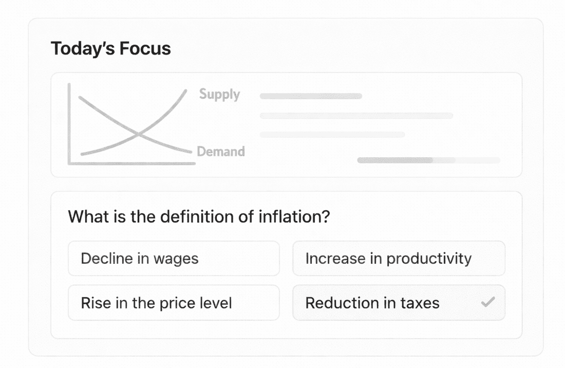 See your learning progress, identify weak areas, and refine your study strategy. Penseum helps you stay consistent and improve with every session.
