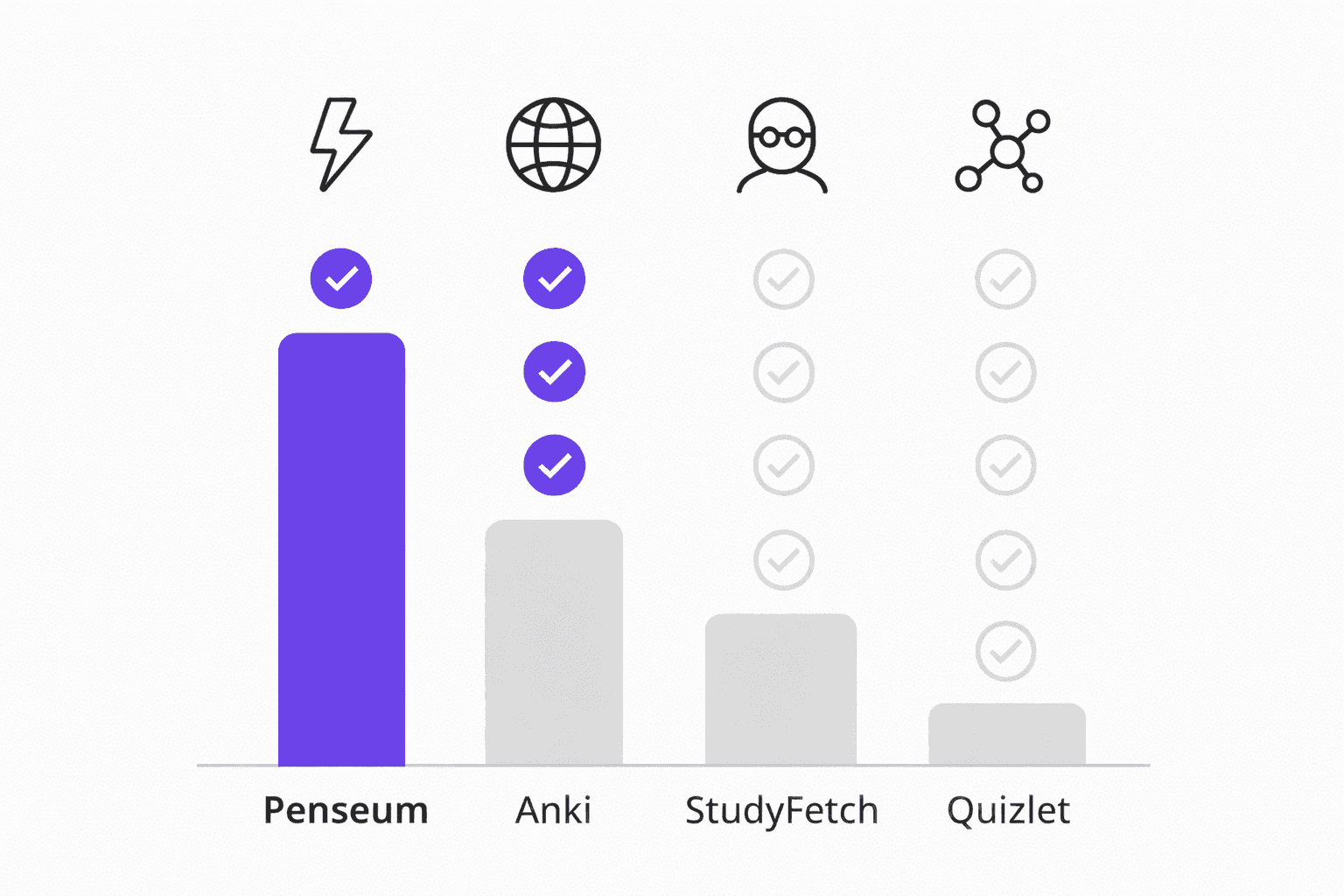 Feature | Penseum | Anki | StudyFetch | Quizlet |
